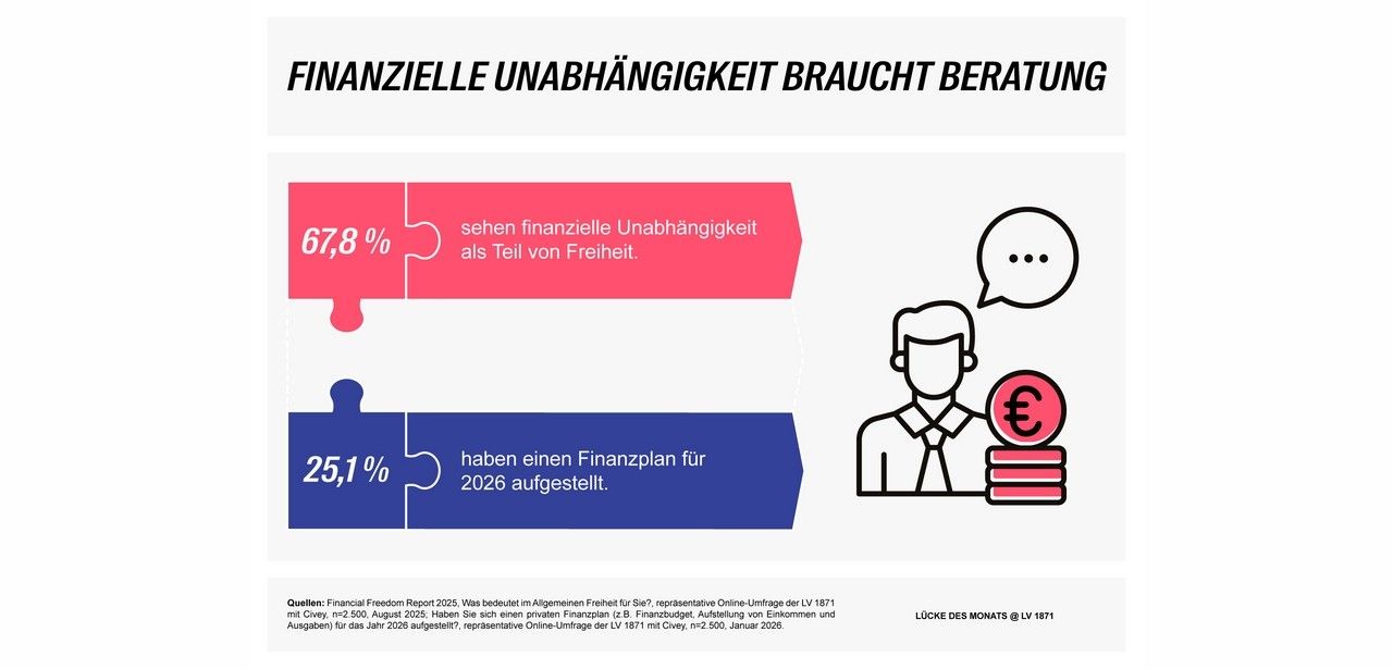 Die Auswertung einer Civey-Erhebung im Auftrag der LV 1871 zeigt, dass nur 25,1 Prozent der deutschen Bevölkerung bis 2026 einen privaten Finanzplan verwirklicht haben. Unter den Erwerbstätigen beziehen lediglich 37,4 Prozent das Risiko einer Berufsunfähigkeit in ihre Kalkulation ein. Die Studie, präsentiert am Tag der Bildung, deckt insbesondere geschlechter- und bildungsspezifische Unterschiede auf. Diese eklatante Lücke im Risikomanagement erfordert umgehende Implementierung effektiver Vorsorgeinstrumente sowie die Erarbeitung individueller Finanzkonzepte mit integrierter BU- Absicherung um.