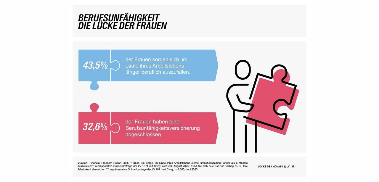 Die Analyse des Financial Freedom Report 2025 weist darauf hin, dass Frauen häufiger als Männer länger als sechs Monate krankheitsbedingt ausfallen, aber nur ein Drittel über eine Berufsunfähigkeitsversicherung verfügt. LV 1871 bietet dafür flexible Nachversicherungsgarantien, digitale Risikoprüfung in Echtzeit und innovative Schüler-BU-Tarife an. Damit können Frauen ihren Einkommensschutz frühzeitig planen und bei Bedarf anpassen. Versicherungsmaklerinnen beraten professionell, erläutern Konditionen und gestalten individuelle Absicherungsstrategien. Sie klären Fragen und passen Angebote an.
